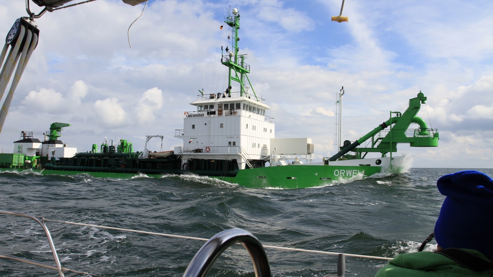 Wir sind auf dem nächsten Langen Schlag von Bornholm nach Sassnitz auf Rügen. Der Wind weht mit 5 BFT aus Nordwest. Wir laufen hoch am Wind unter Vollzeug mit nahezu Rumpfgeschwindigkeit. Seit einiger Zeit beobachte ich im Plotter, den Frachter Petersburg. Das AIS sagt Passierabstand 16 Fuss in 30 Minuten – Kollisionskurs. Höher an den Wind geht nicht. Abfallen will ich nicht, da dadurch wertvolle Höhe verschenkt wird. Außerdem habe ich Vorfahrt und bin Kurshaltepflichtig. Als erst mal gar nichts machen und weiter beobachten, was der Frachter macht. Nichts passiert, er muss mich doch im AIS und auf dem Radar sehen. Langsam wird’s eng. Ich rufe Ihn über UKW auf Kanal 16.