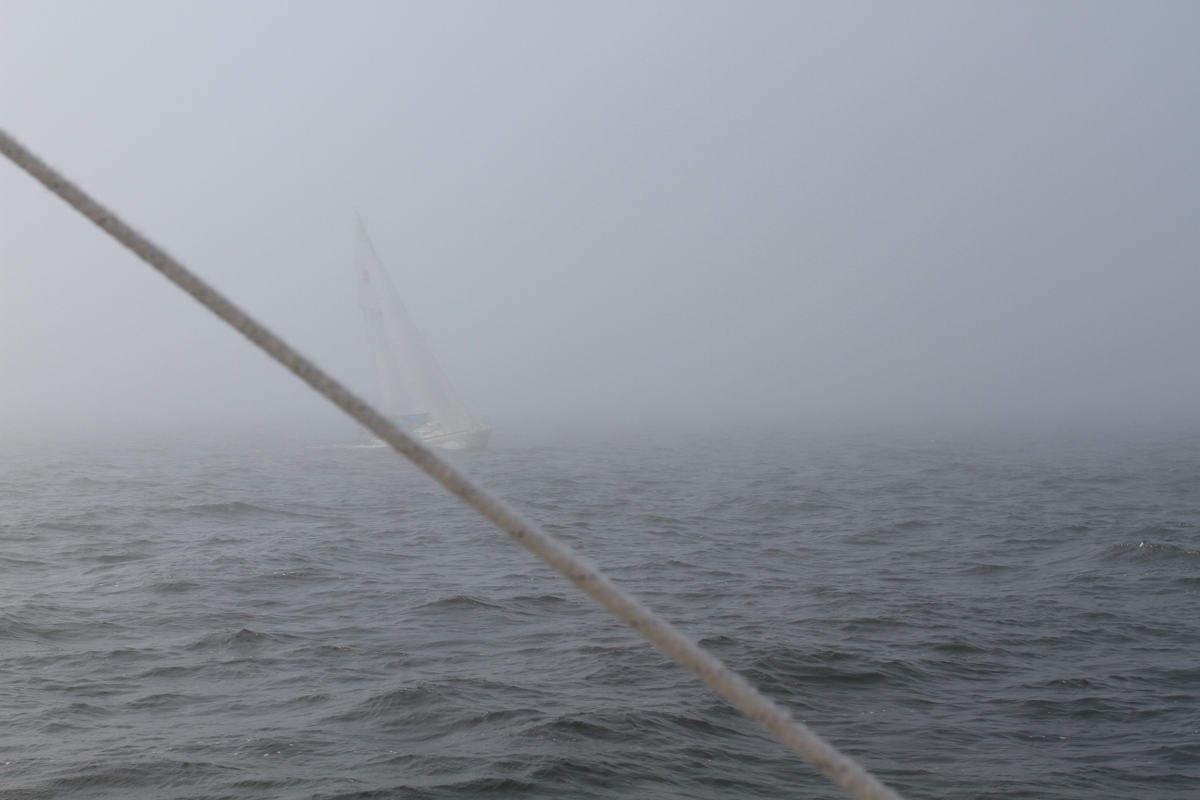 Als wir heute Morgen von Borgholm, dem nördlichsten Punkt unserer Reise, los sind haben wir bei nördlichen Winden den Spinnacker gesetzt. Zwischenzeitlich segeln wir wieder in dichtestem Seenebel. Das Wasser ist glatt und ich lasse den Spi stehen. Es ist unglaublich ruhig. Unsere XENIA fährt mit 5 Knoten fast lautlos durch die unwirklich wirkende Atmosphäre. Im Radar taucht ein Sportboot im Zickzack Kurs auf. Wir geben regelmäßige Schallsignale. Man sieht absolut nichts. Ich schätze die Sichtweite auf maximal 100 Meter. Das andere Boot kommt uns offensichtlich auf Kreuzkurs entgegen. So wie es aussieht besteht keine Kollisionsgefahr. Kurz vor uns macht er eine Wende auf uns zu. Jetzt haben wir Vorfahrt, aber hat er Radar und sieht uns? OK er geht sauber hinter uns durch. Als er in Sicht kommt, hören wir kurz darauf die andere Crew laut aufschreien. Er hatte doch kein Radar und die schwedische Crew hat offensichtlich vor Überraschung geschrien, obwohl wir im Gegensatz zu ihm, regelmäßig Schallsignale gegeben haben. Puuuh – die Schweden haben echt Nerven, ich würde mich ohne Radar nicht trauen durch so eine Suppe zu fahren.