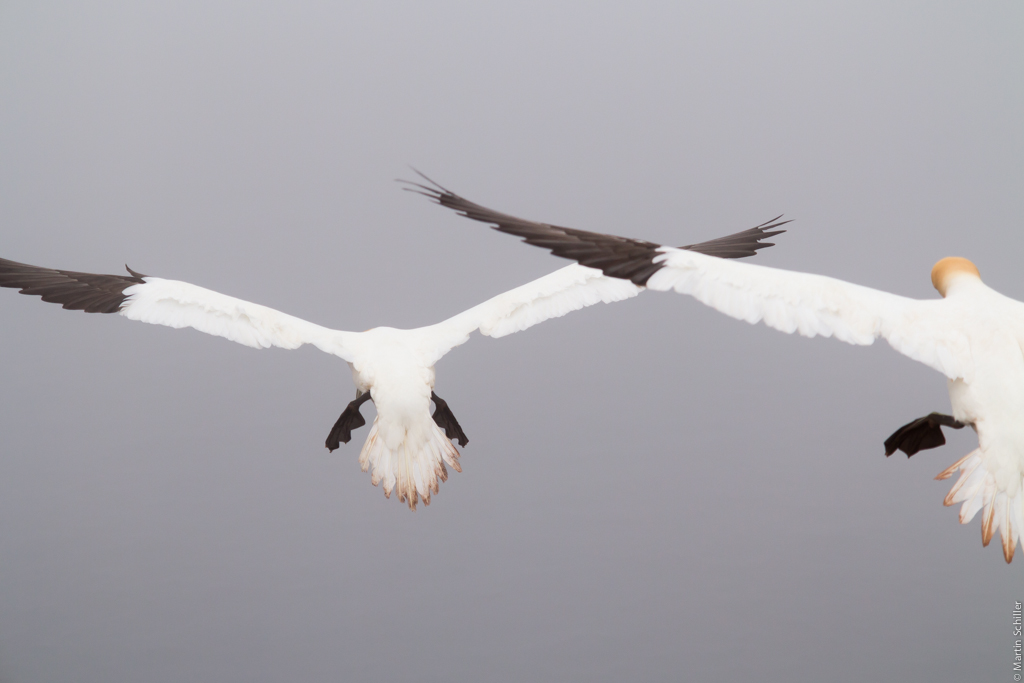 | Die Vögel in den Klippen lassen sich durch nichts beeindrucken. Das sind wahre Flugkünstler. |